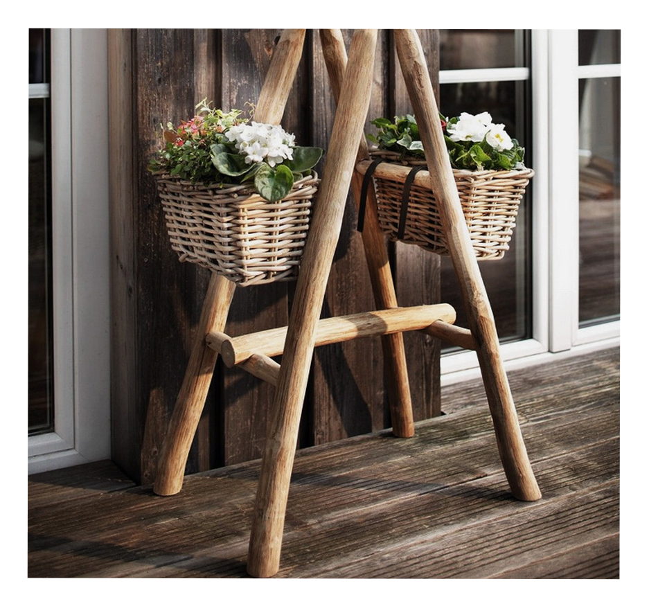 Round Pot Basket With Wooden Legs