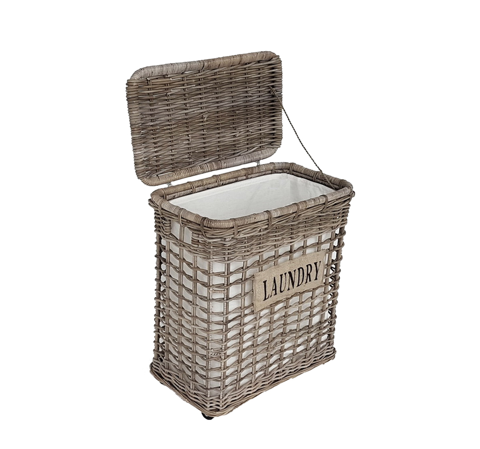 Set Of 2 Laundry Basket Rattan Pole Frame