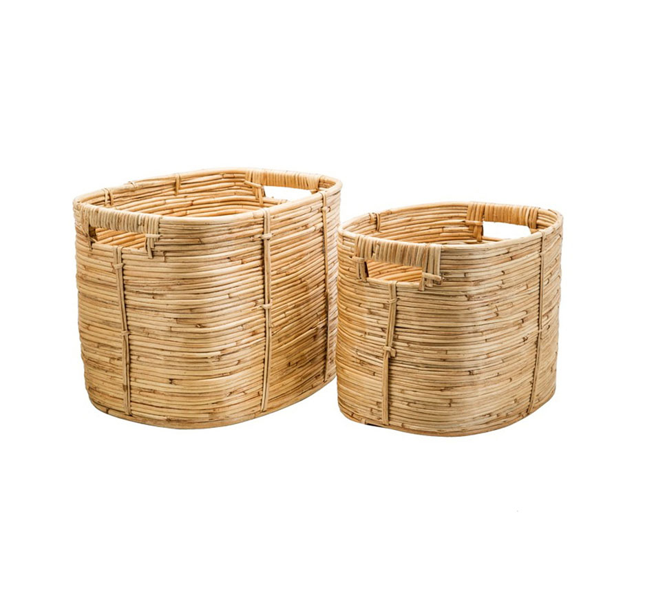 Set Of 2 Oval Storage Baske Twist Weaving Model