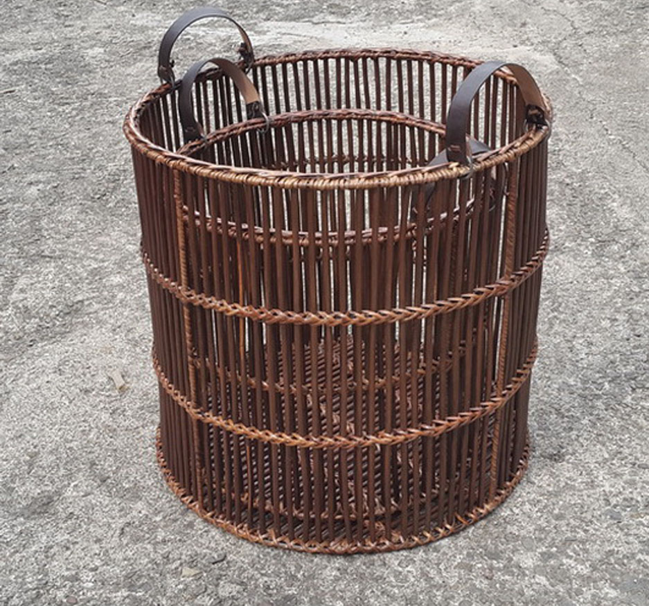 Set Of 2 Laundry Basket Rattan Pole Frame