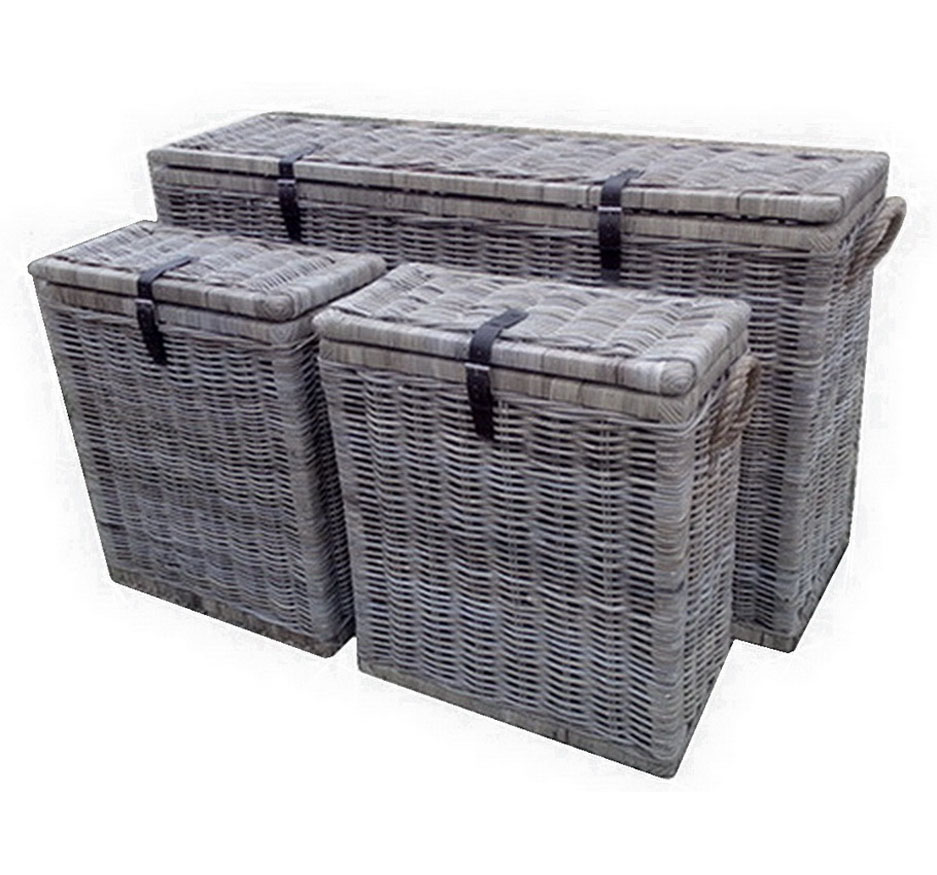 SET oF 3 Bench Traveller Trunk Kubu Grey with Leather