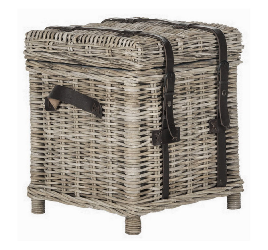 Table Trunk Kubu Grey Wooden Lid with Leather