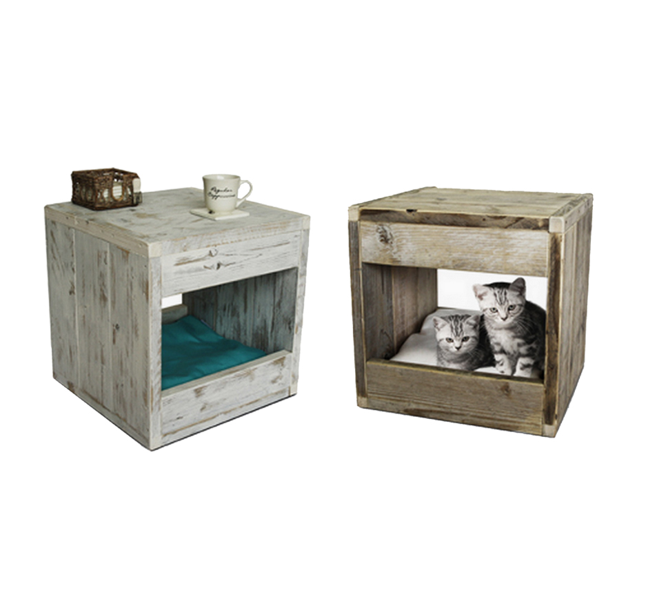 Wooden Cat House Rustic & White Wash